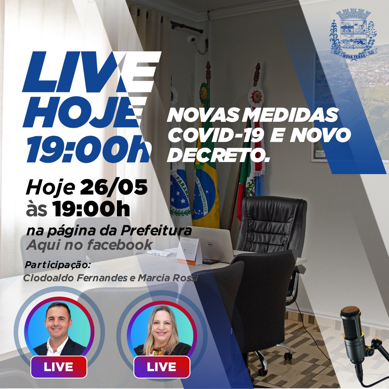 Hoje é dia de Live informativa COVID, com a participação do Prefeito Clodoaldo e também da Secretária Municipal de Saúde Marcia Rossi.