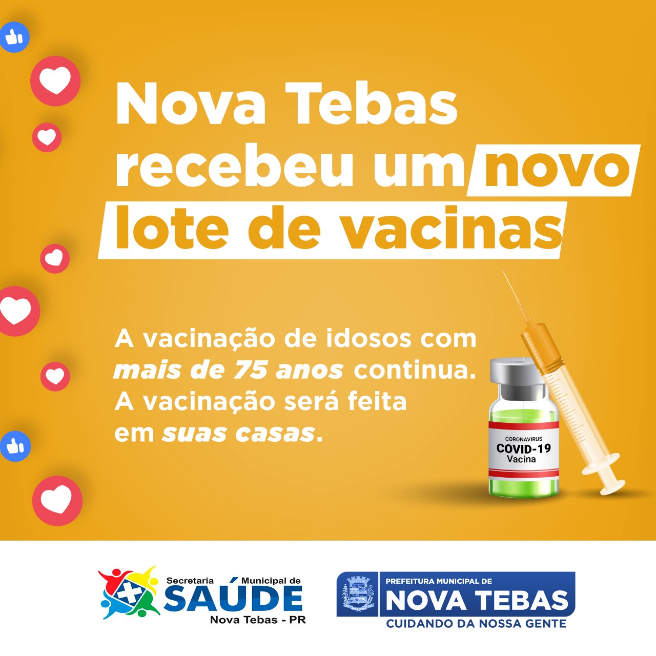 Lembramos que a vacinação acontece nas casas, portanto, os idosos não precisam se deslocar para receber o imunizante.