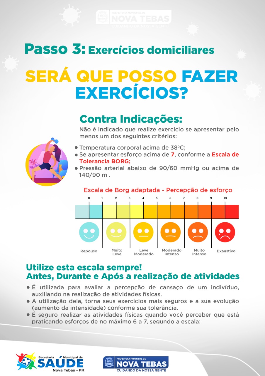 A Secretaria Municipal de Saúde elaborou uma cartilha com orientações e dicas de exercícios para que quem já teve contato com o vírus possa realizar em casa.