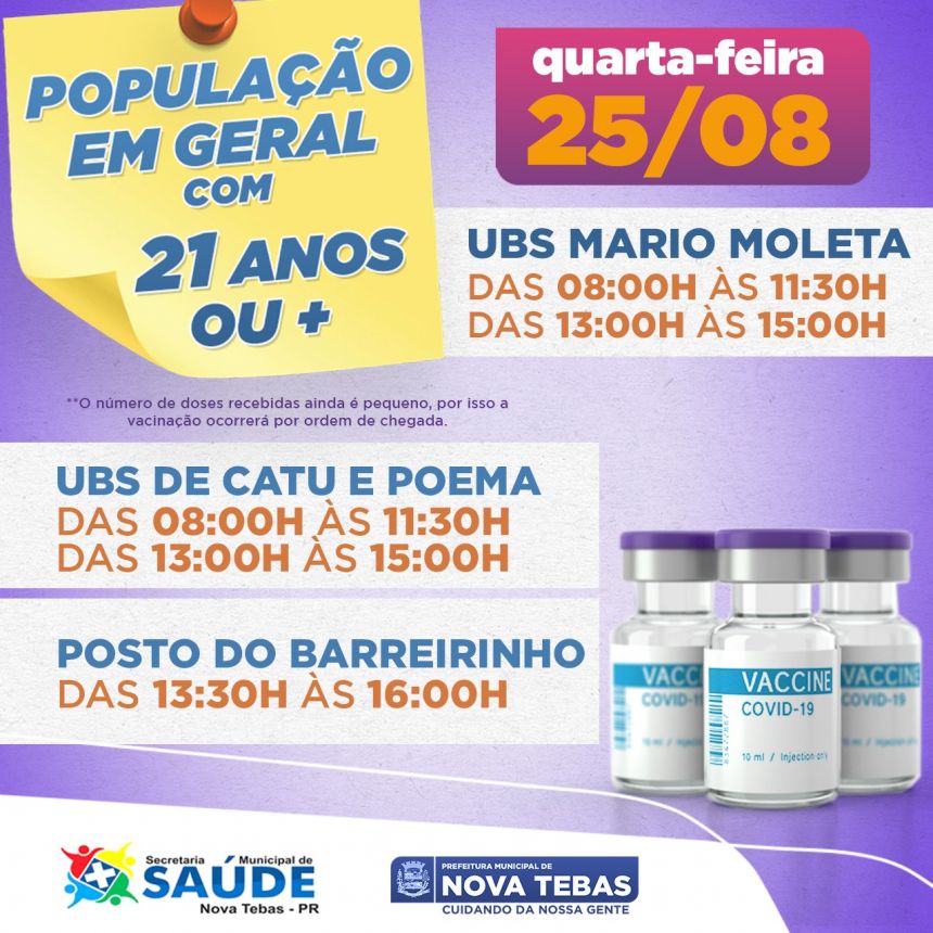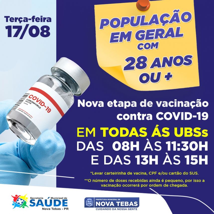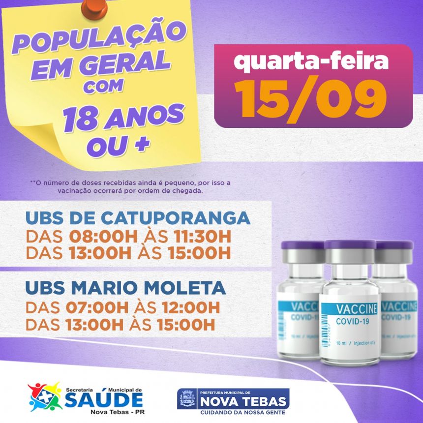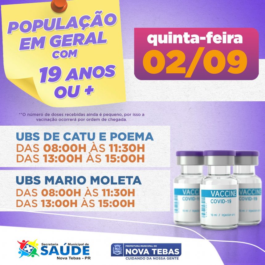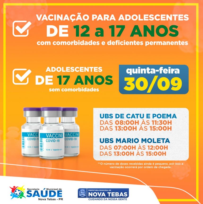 Nova Tebas já atingiu a marca de 77% da população vacinada com a primeira dose!
