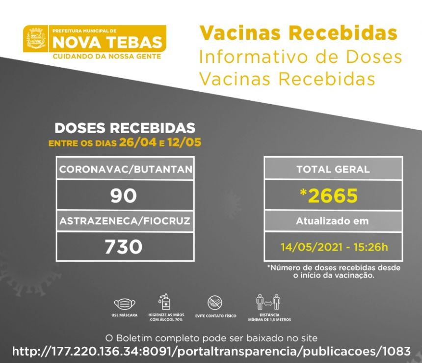 Informações COVID-19 - Vacinas recebidas entre 26 de abril e 12 de maio